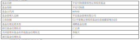 中国经济网北京10月21日讯 今日,平安基金公告,平安可转债、平安双盈添益债券增聘江正清。