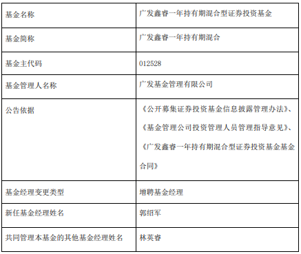 广发鑫睿一年持有期混合增聘郭绍军