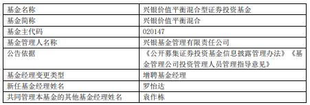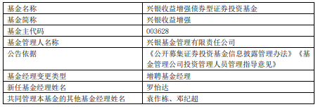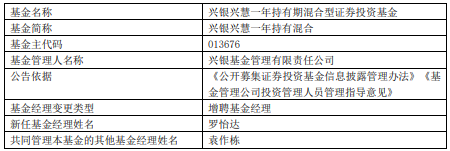 兴银基金旗下4只基金增聘罗怡达