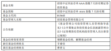 招商中证同业存单AAA指数7天持有期增聘羊睿佳