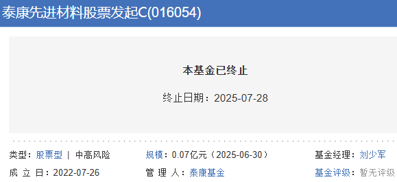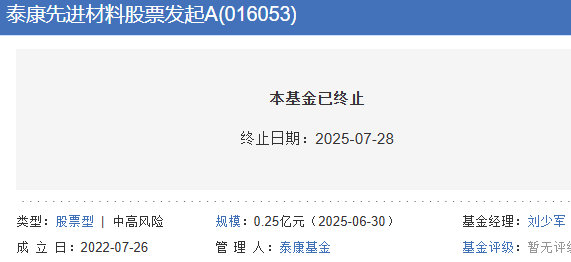 泰康先进材料股票基金发起式清盘 成立3年小幅亏损