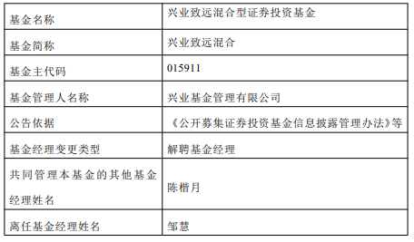 邹慧离任兴业致远混合兴业弘远回报混合发起式