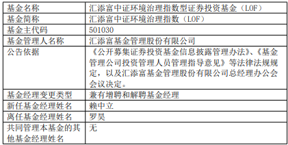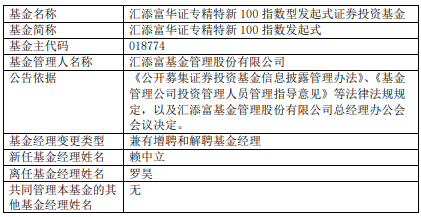 中国经济网北京10月27日讯 近日,汇添富基金公告,汇添富华证专精特新100指数发起式、汇添富中证环境治理指数(LOF)增聘赖中立。