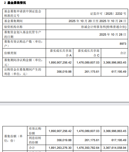嘉实成长共享混合成立 规模33.68亿元