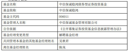 中国经济网北京11月4日讯 今日,中信保诚基金公告,陈岚离任中信保诚稳鸿。
