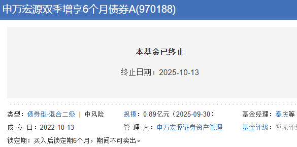 从最后一次披露净值看,申万宏源双季增享6个月债券A的累计净值为1.1172元,累计收益率11.4%。申万宏源双季增享6个月债券B的累计净值为1.1575元,累计收益率12.32%,申万宏源双季增享6个月债券C的累计净值为1.1096元,累计收益率10.64%。