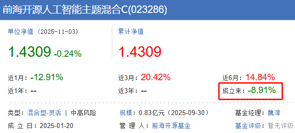 前海开源人工智能主题混合C同样成立于今年1月20日,但累计收益率却是-8.91%。三季度前十大重仓股为歌尔股份、瑞芯微、芯原股份、恒玄科技、晶晨股份、翱捷科技、兆易创新、乐鑫科技、全志科技、中科蓝讯。