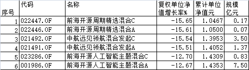 10月份混基排行榜垫底:前海开源周期精选跌逾15%