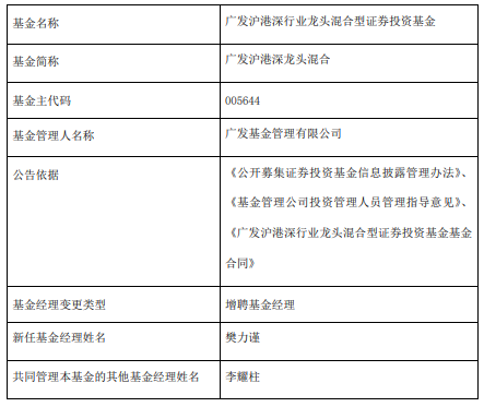 广发沪港深龙头混合增聘樊力谨