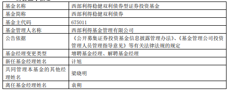 中国经济网北京11月5日讯 今日,西部利得基金公告,西部利得稳健双利债券增聘计旭。