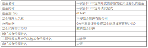 唐煜离任平安合轩1年定开债发起式