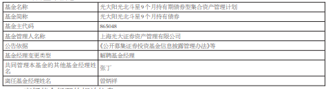 曾炳祥离任光大证券资管旗下2只债基