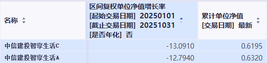 中国经济网北京11月7日讯 截至今年10月31日收盘,中信建投智享生活混合A/C在今年前10月里分别下跌12.79%和13.09%。