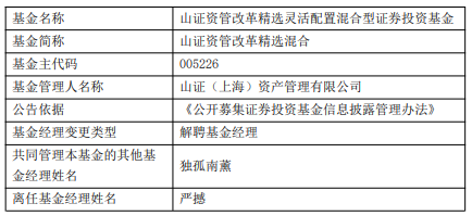 中国经济网北京11月11日讯 今日,山证(上海)资产管理公告,严撼离任山证资管改革精选混合。