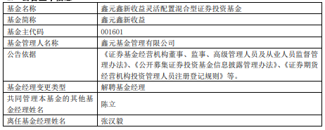 张汉毅离任鑫元基金旗下2只基金 1只累计亏逾42%