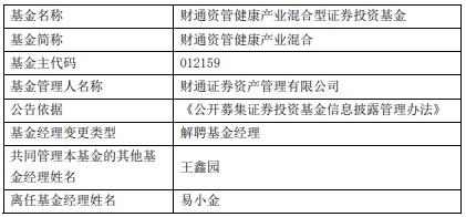 易小金离任财通资管旗下3只混基
