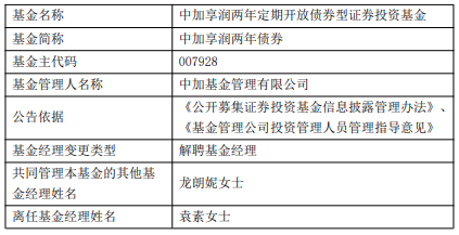 中国经济网北京12月17日讯 近日,中加基金公告,袁素离任中加享润两年债券,龙朗妮管理。