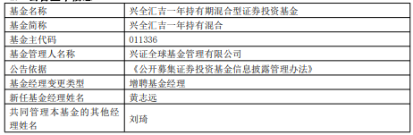 中国经济网北京12月22日讯 近日,兴证全球基金公告,兴全汇吉一年持有混合增聘黄志远。