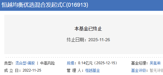 该基金的最后运作日为2025年11月25日,自2025年11月26日起该基金进入清算程序。