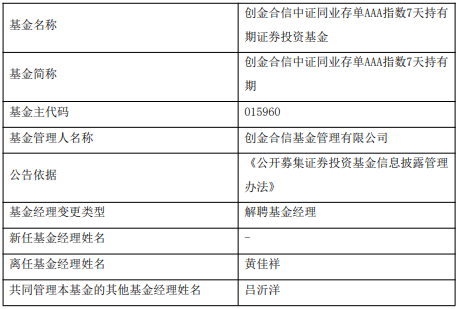 中国经济网北京12月25日讯 今日,创金合信基金公告,黄佳祥离任创金合信中证同业存单AAA指数7天持有期。