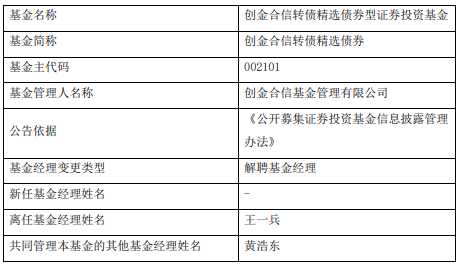 中国经济网北京12月29日讯 近日,创金合信基金公告,王一兵离任创金合信转债精选债券。