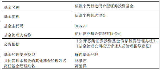 中国经济网北京12月31日讯 今日,信达澳亚基金公告,冯玺祥离任信澳宁隽智选混合。