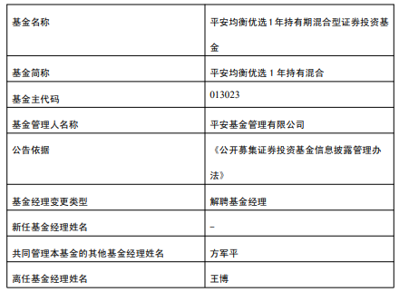 中国经济网北京1月5日讯 近日,平安基金公告,王博离任平安均衡优选1年持有混合。