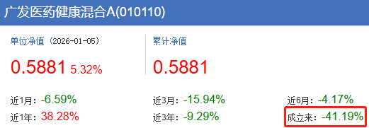 2025年三季报显示,广发医药健康混合前十大重仓股为科伦博泰生物、信达生物、荣昌生物、三生制药、百利天恒、荣昌生物、恒瑞医药、药明康德、泽璟制药、信立泰。该基金不仅在去年12月份业绩不佳,从2020年10月21日成立至今的5年多时间里,该基金A/C份额分别遭遇41.19%和42.41%的跌幅。