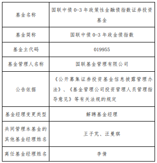 中国经济网北京1月12日讯 近日,国联基金公告,李倩离任国联中债0-3年政金债指数。