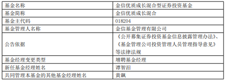 中国经济网北京1月12日讯 今日,金信基金公告,金信优质成长混合增聘谭智汨。