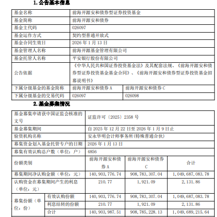 中国经济网北京1月14日讯 今日,前海开源基金发布前海开源安和债券型证券投资基金基金合同生效公告。