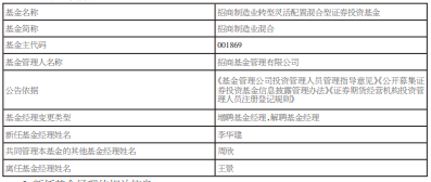 中国经济网北京1月15日讯 今日,招商基金公告,招商制造业混合增聘李华建,王景离任。