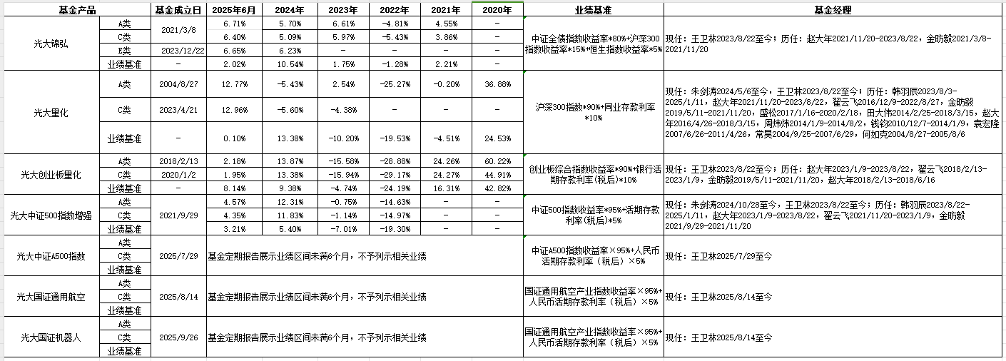 风险提示:基金有风险,投资需谨慎。在进行投资前敬请投资者仔细阅读《基金合同》、招募说明书、《产品资料概要》等法律文件,光大晟利、光大增利、光大安诚、光大恒鑫及光大锦弘的产品风险等级为R2(中低风险),适合风险等级为C2(稳健型)及以上的投资者;光大中证A500、光大沪深300、光大产业新动力、光大景气先锋、光大动态优选、光大中高等级及光大添益的产品风险等级为R3(中风险),适合风险等级为C3(平衡型)及以上的投资者。敬请投资者关注产品的风险等级与自身风险评级进行独立决策。本材料不构成任何法律文件或是投资建议或推荐。基金管理人承诺以诚实信用、勤勉尽责的原则管理和运用基金资产,但不保证上述基金一定盈利,也不保证最低收益。基金的过往业绩、净值高低、获奖情况及相关行业排名并不预示其未来业绩表现,基金管理人管理的其他基金的业绩不构成对上述基金业绩表现的保证。