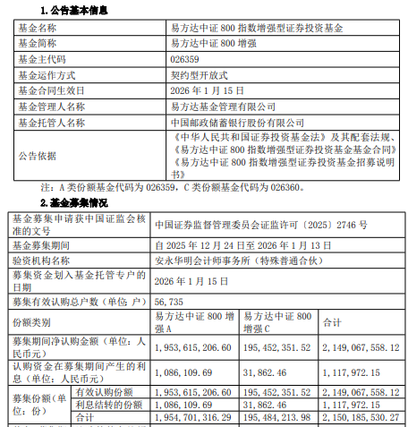 中国经济网北京1月16日讯 今日,易方达基金发布易方达中证800指数增强型证券投资基金基金合同生效公告。