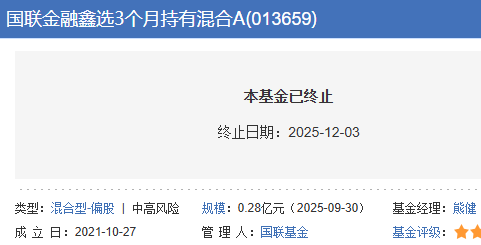 该基金最后运作日为2025年12月2日,自2025年12月3日起进入清算程序。