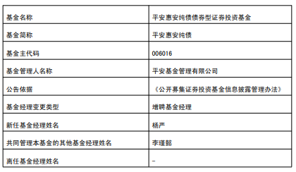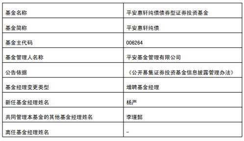 中国经济网北京1月20日讯 今日,平安基金公告,平安合聚定开债、平安惠安纯债、平安惠轩纯债、平安惠润纯债增聘杨严。