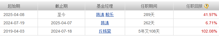 从另一只基金,中庚小盘价值的各基金经理任职回报看,在接替丘栋荣管理后,陈涛独自管理262天的回报仅有6.71%,随后,担任投资部量化投资部总监,但从来没管理过公募基金的殷乐加入进来,与陈涛共同管理。尽管如此,该基金在2024年和2025年的净值表现都远远不及同类产品均值。