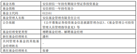 中国经济网北京1月26日讯 近日,安信基金公告,安信招信一年持有混合、安信新成长混合增聘潘科。