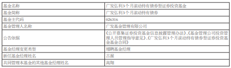 中国经济网北京1月28日讯 今日,广发基金公告,广发弘利3个月滚动持有债券增聘古渥。