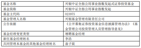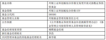 中国经济网北京1月29日讯 今日,兴银基金公告,兴银上证科创板综合价格ETF、兴银国证新能源车电池ETF、兴银中证科创创业50指数、兴银MSCI中国A50互联互通指数发起、兴银中证全指公用事业指数发起增聘李浩。