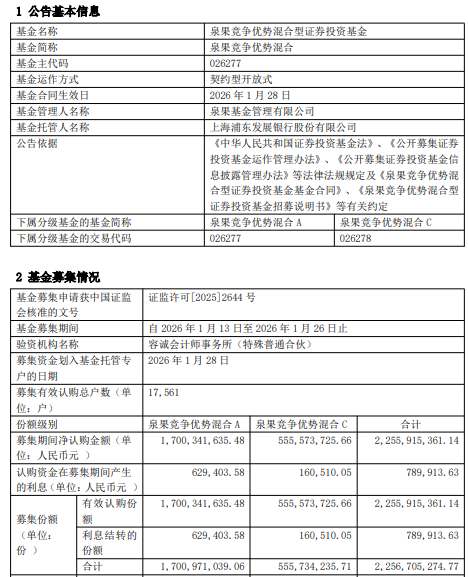 中国经济网北京1月30日讯 昨日,泉果基金发布泉果竞争优势混合型证券投资基金基金合同生效公告。