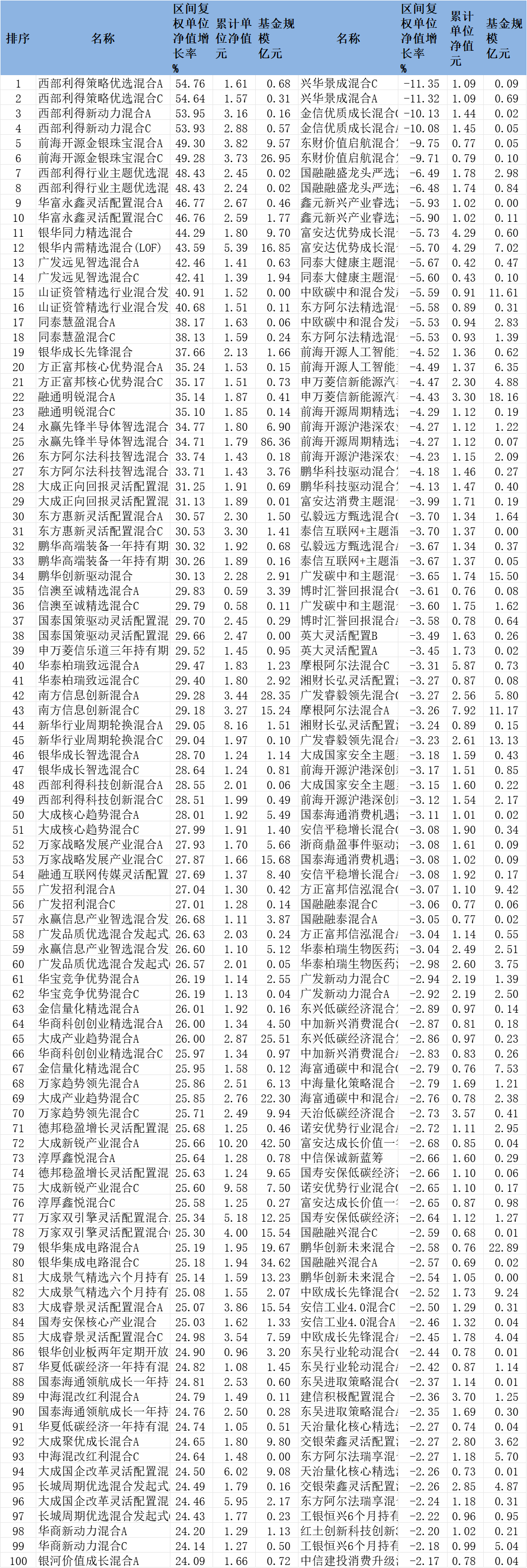 2026年1月份混合型基金涨跌幅前100名