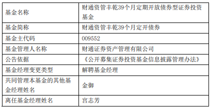 中国经济网北京2月4日讯 今日,财通证券资产管理有限公司公告,宫志芳离任财通资管丰乾39个月定开债券,金御管理。