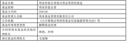 中国经济网北京2月10日讯 今日,明亚基金公告,毛瑞翔离任明亚价值长青、明亚中证1000指数增强。
