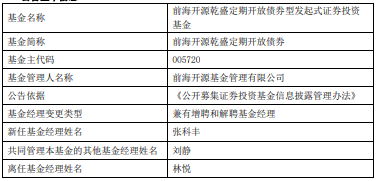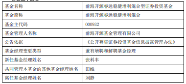 中国经济网北京2月24日讯 近日,前海开源基金公告,前海开源鼎欣债券、前海开源乾盛定期开放债券、前海开源丰和债券、前海开源睿远稳健增利混合增聘张科丰。