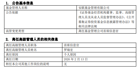 日讯 近日,安联基金公告,首席信息官罗瑞宏因个人原因离任。