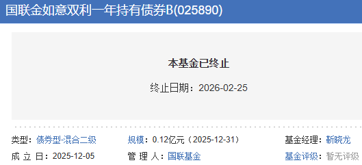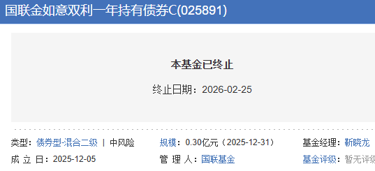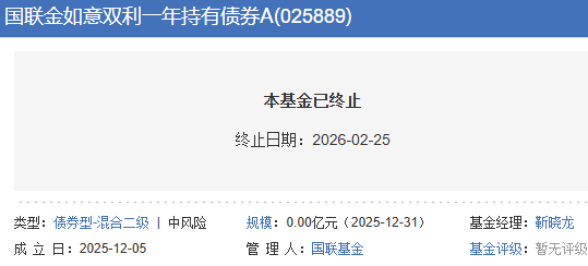 截至2026年2月24日日终,该基金已连续50个工作日基金资产净值低于5000万元,已触发基金合同终止的上述情形。根据《基金合同》约定,基金管理人将终止基金合同并依法履行基金财产清算程序,无需召开基金份额持有人大会。