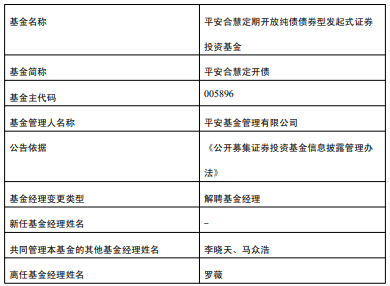 中国经济网北京3月2日讯 近日,平安基金公告,罗薇离任平安合慧定开债。