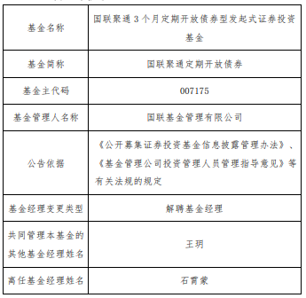 中国经济网北京3月2日讯 近日,国联基金公告,石霄蒙离任国联中债1-5年国开行、国联聚通定期开放债券、国联恒安纯债。