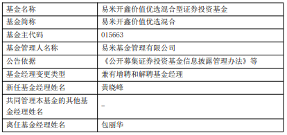 易米基金旗下2只混基增聘黄晓峰 开年以来跌4%